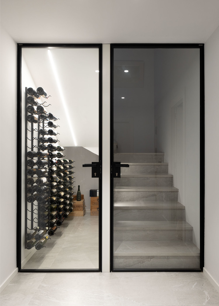 El proyecto parte de una vivienda originalmente construida en los años 1970 y provoca un cambio radical al hacer todo el espacio en planta baja un solo continuo abierto. Se dibuja así un recorrido desde la puerta principal al jardín, fluido pero con sus dosis de revelación y misterio, que discurre acompañado por los pliegues de una pared panelada en roble.