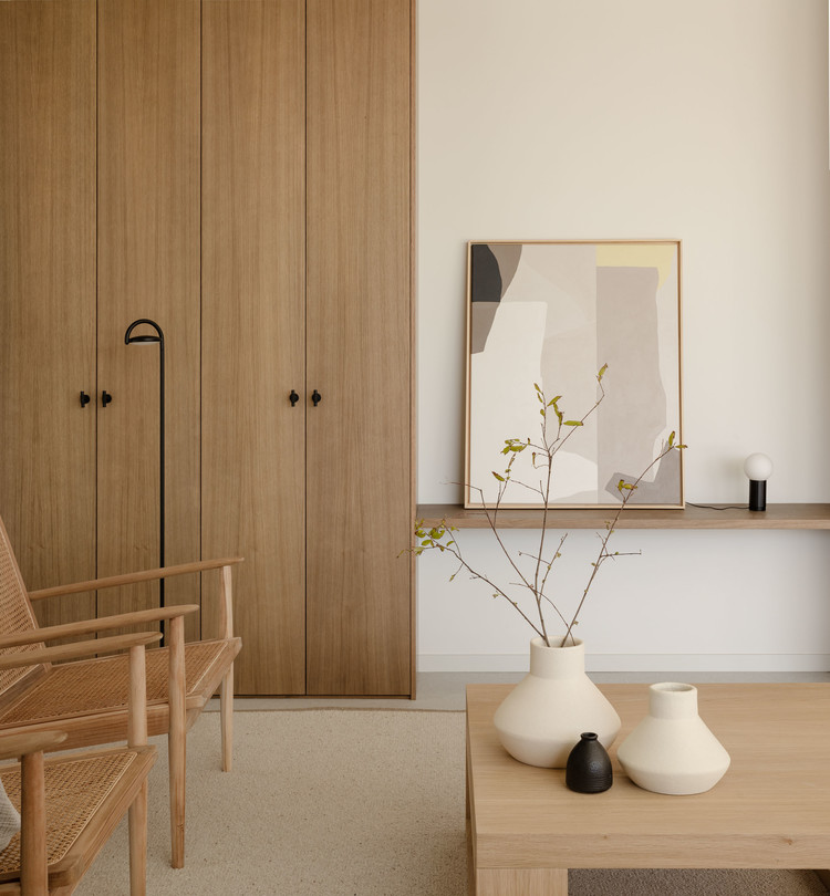 Los tres cuadros de este gran espacio son obra de la firma local Dok Atelier creados a medida para esta vivienda.