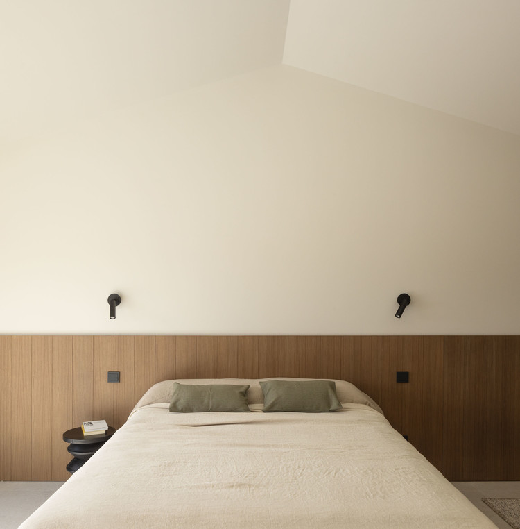 De este modo, las funciones asociadas con el porche tradicional del caserío vasco se desdoblan dando lugar a tres espacios de privacidad creciente, cada uno con su particular orientación y carácter: un umbral que otorga cobijo en el acceso a la vivienda en la fachada norte, un gran porche en planta baja orientado hacia el sur que se transforma en el lugar social por excelencia de la vivienda y una terraza en el piso superior, que toma un cariz más íntimo, casi secreto porque no es visible desde la calle ni desde el jardín, invitando al descanso y la contemplación del amanecer. Estos lugares, entre el interior y exterior de la casa, contribuyen a cualificar las secuencias que se producen diariamente al recorrerla, invitando a habitar el umbral entre el interior y el interior protegido de la lluvia.