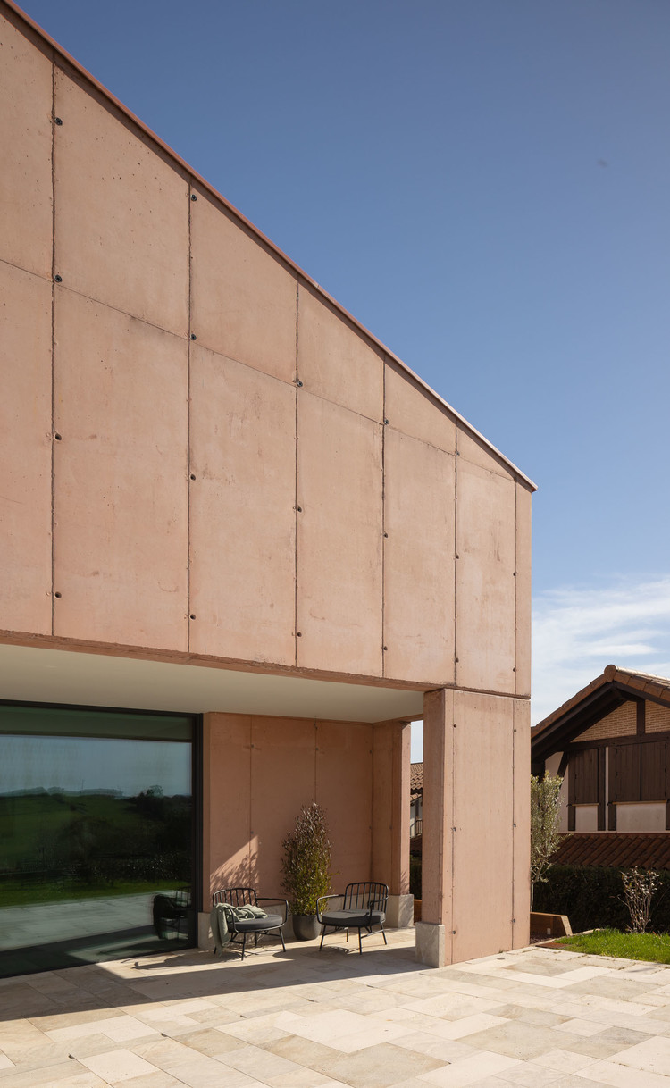 No hay mejor forma de honrar la historia que manteniéndola viva. Los arquitectos de Polo Estudio reinterpretan el caserío vasco con una construcción de obra nueva proyectada en hormigón rosa.