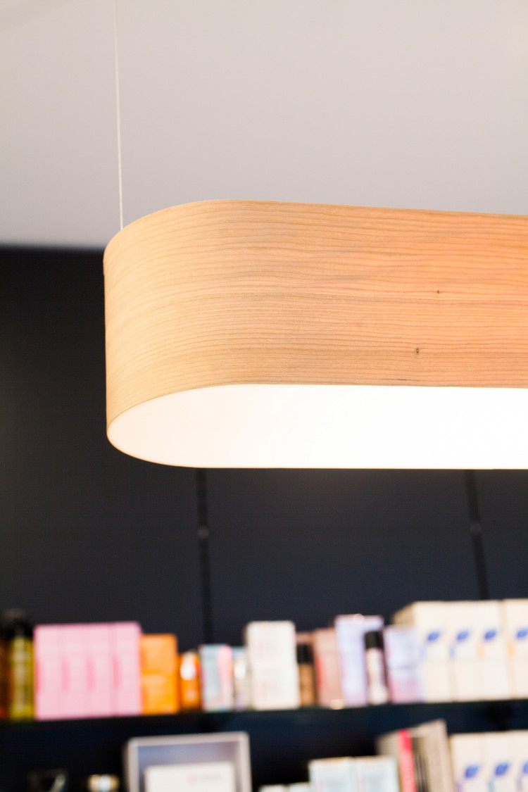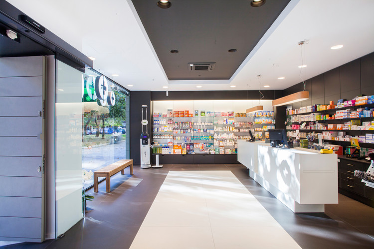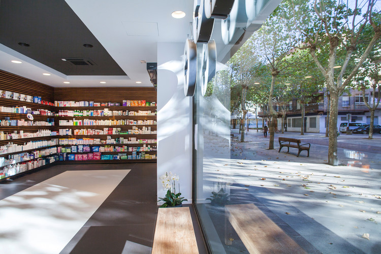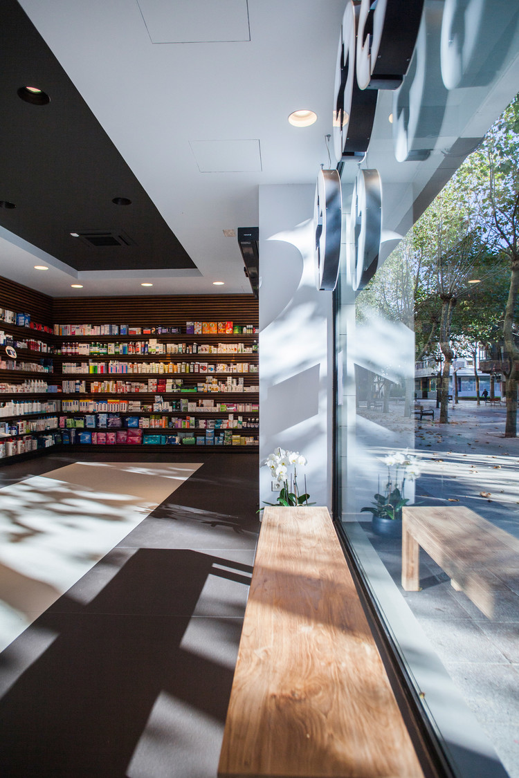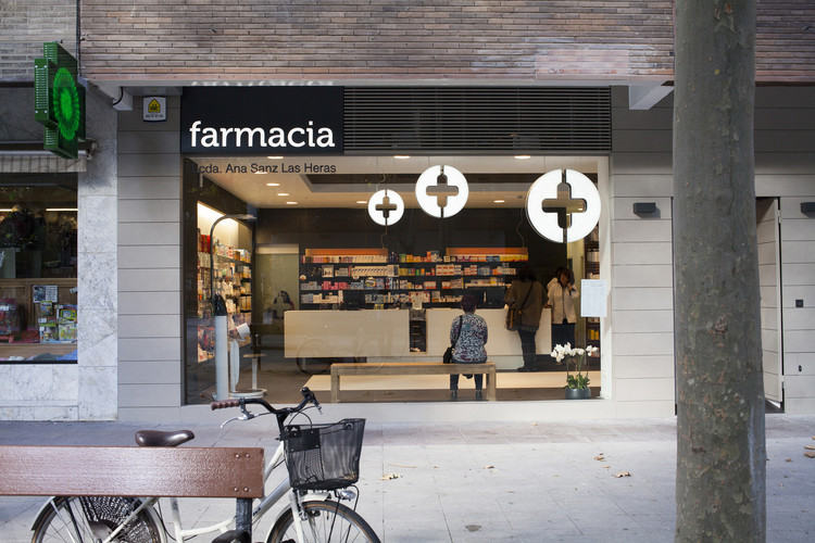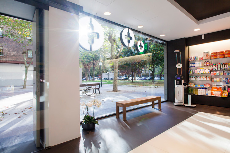 La farmacia de Ana Sanz está ubicada en un barrio residencial de Vitoria y sus requerimientos para el proyecto fueron dos: la ampliación del local y la eliminación de barreras arquitectónicas. Para el equipamiento, se desarrolla una solución de mobiliario a medida en la que los anclajes de las baldas de vidrio se intercalan con listones de madera. Las luminarias colgantes sobre mostradores hacen eco a este material con una fina chapa de cerezo que se curva alrededor de la fuente de luz. El logo se torna corpóreo en el escaparate, aportando luz e identidad corporativa. La obra se lleva a cabo en un plazo de 4 semanas durante el cierre vacacional.