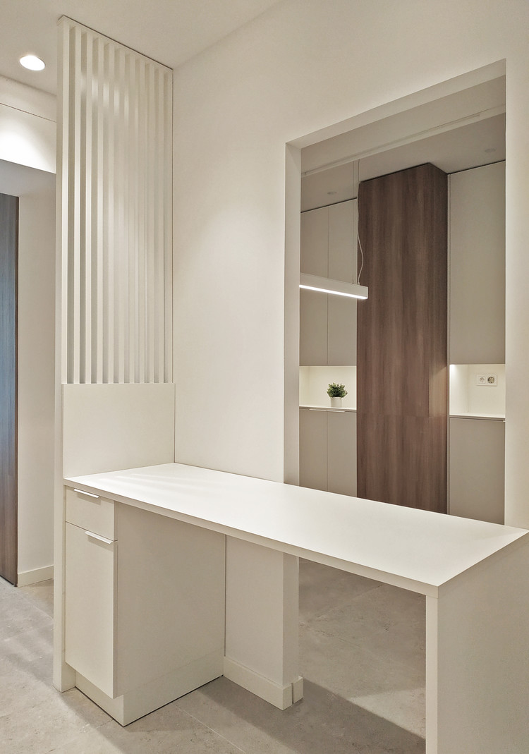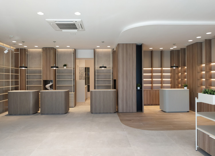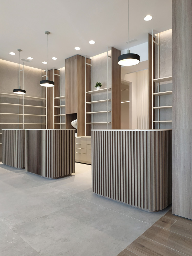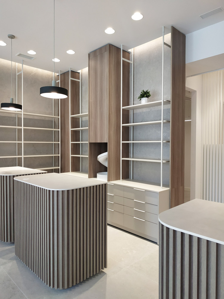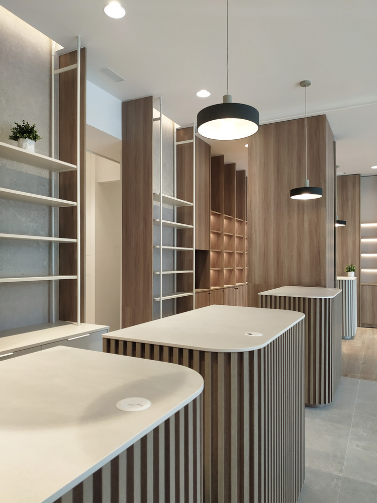 Tras solo un mes de cierre durante el verano de 2022, la farmacia abre sus puertas de nuevo luciendo un mobiliario nuevo, ligero, de diseño muy cuidado y detalles de listones verticales de madera en mostradores. Entre los acabados interiores destaca el suelo de gran formato, que aporta limpieza a las sensaciones interiores.
