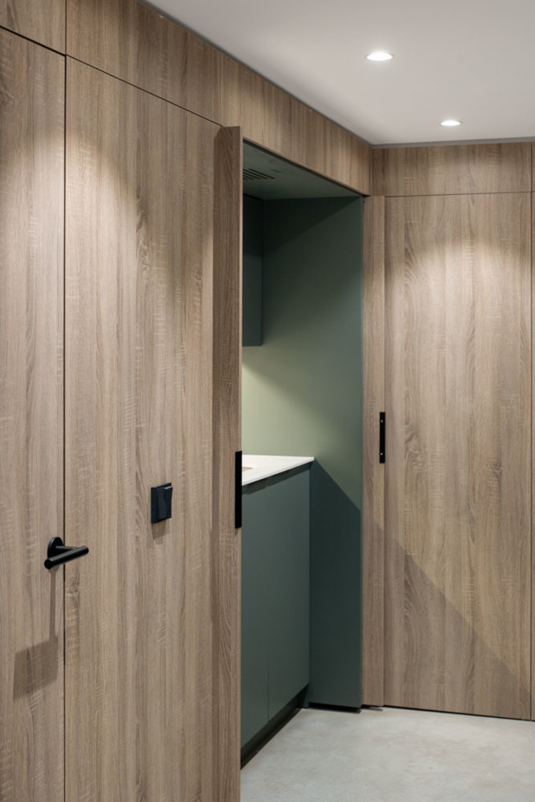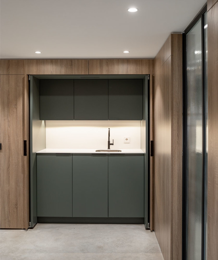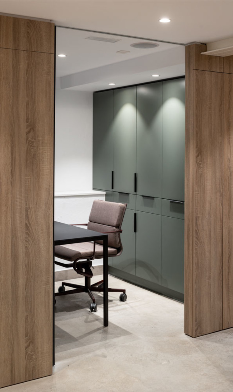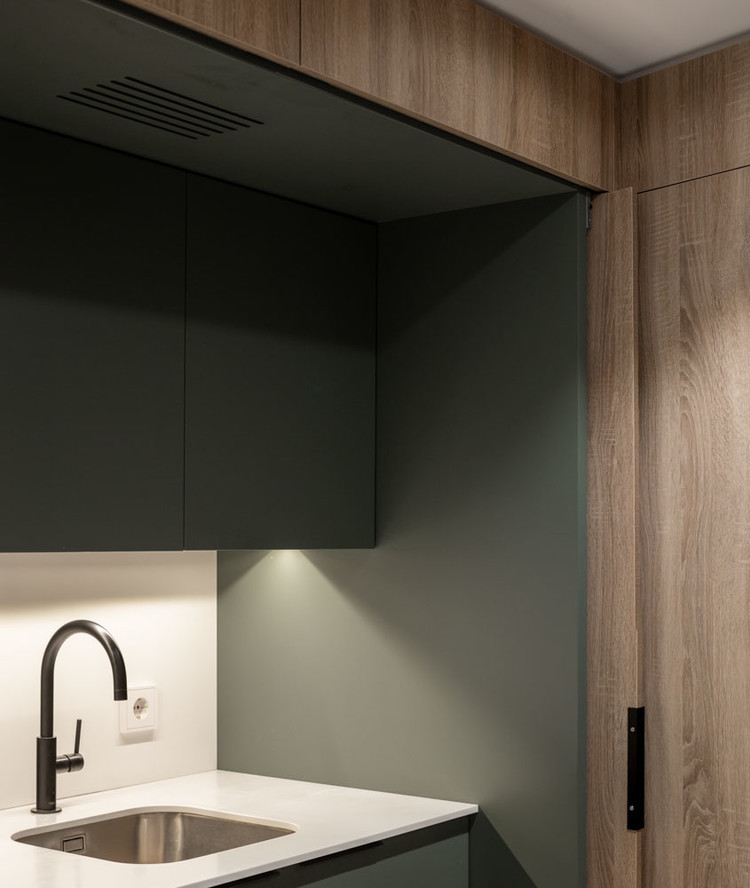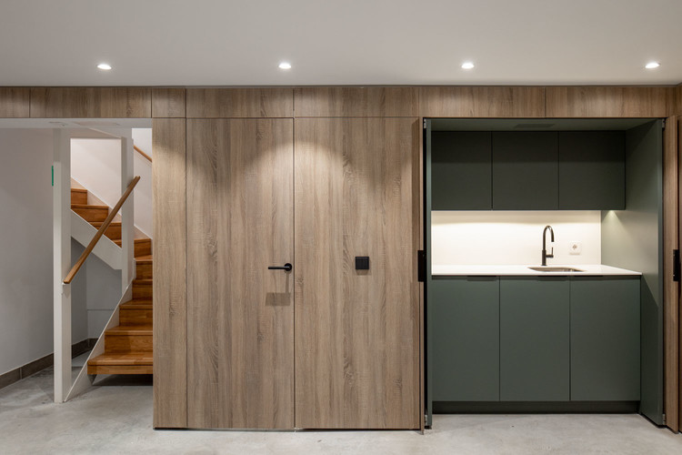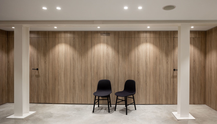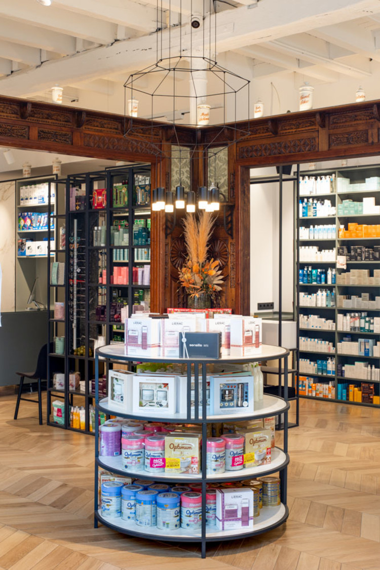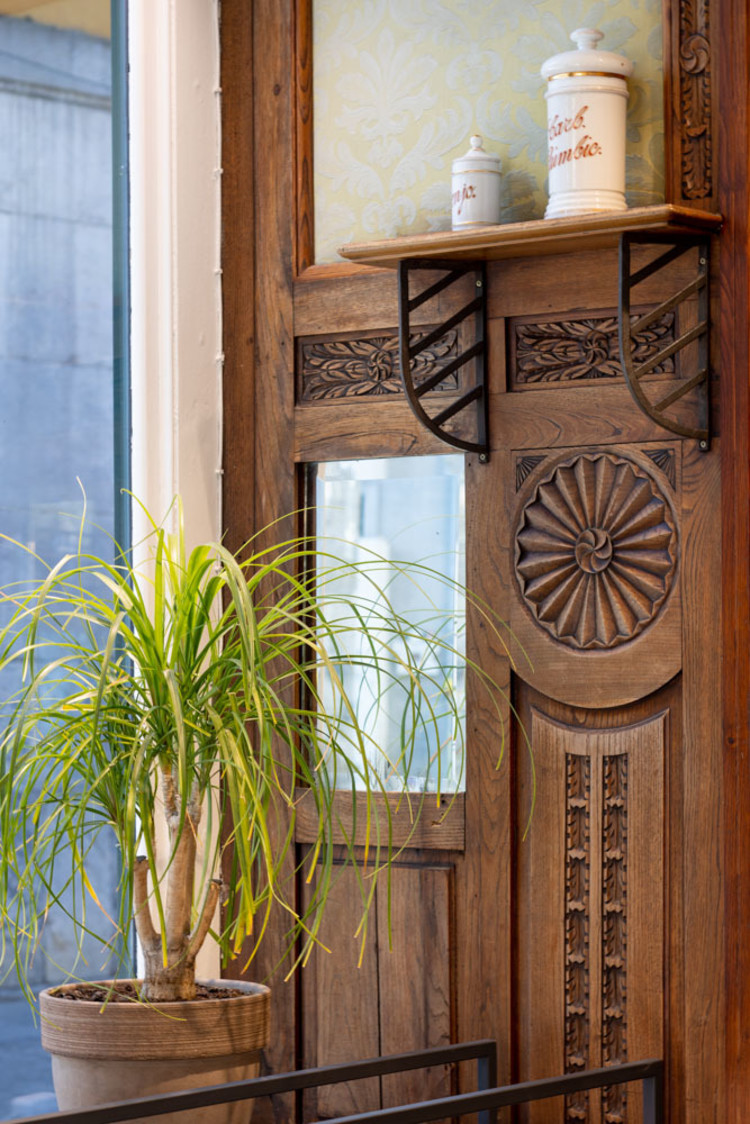 En el proyecto se incorporan y restauran los elementos históricos de la farmacia, desde el mobiliario, a las puertas, también la sillería de fachada y la estructura de forjados de madera. Además, se amplía la altura del sótano, mediante una excavación extremadamente delicada. Esto se hace así porque además de la zona de atención al público, la farmacia apuesta por otros espacios que se sitúan bajo la misma: una sala de formación y eventos, el laboratorio farmacéutico y despacho.