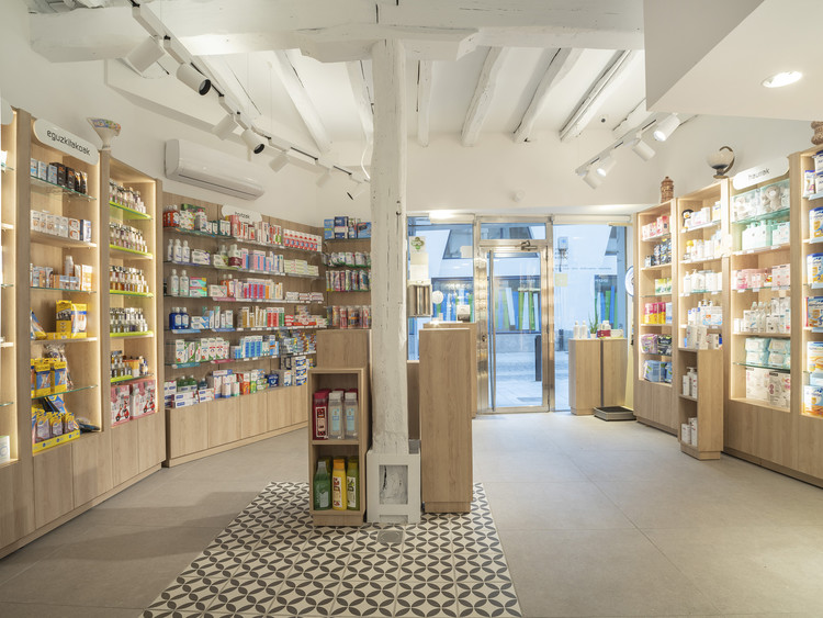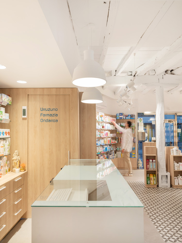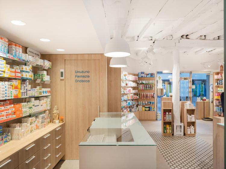 El proyecto de reforma aúna la tradición de pertenecer a la segunda generación de la familia Urruzuno con las necesidades actuales de un local de farmacia que, a grandes rasgos, ha pasado de ser un dispensario a ser un lugar de consejo, de encuentro y de formación. El proyecto conserva uno de los sellos de identidad de la farmacia, una vidriera original de Raventós que se encuentra allí desde su apertura. La zona para el público se amplía y se replantea para permitir su uso como sede de eventos relacionados con la salud y la cosmética.