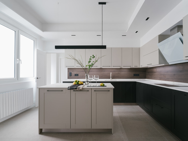 In its original form, the apartment had a classic mid-century bourgeois structure, featuring some typically Basque details, such as a timber panelled lobby with coloured glazing. The project proposes to preserve the essence and elegance of the place, while getting rid of the old school division between serving and living spaces.