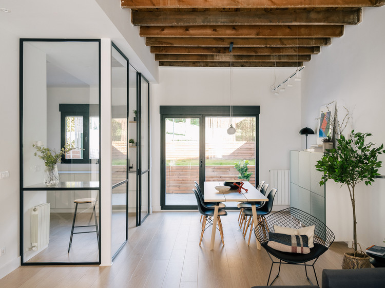 El proyecto parte de una vivienda de mediados del siglo XX para adaptarla a la vida de una joven familia del XXI. En esencia, la casa cuenta con dos plantas, ático y un jardín en varios niveles al que se accede por la parte de atrás. La planta baja es la que experimenta una mayor transformación en la obra, gracias la modificación estructural de un gran muro de carga central para sustituirlo por apoyos más ligeros y estratégicamente colocados. De este modo, los espacios de convivencia familiar –salón, comedor, cocina, jardín– se relacionan entre sí y con el espacio verde de una manera más natural, fluida y flexible.